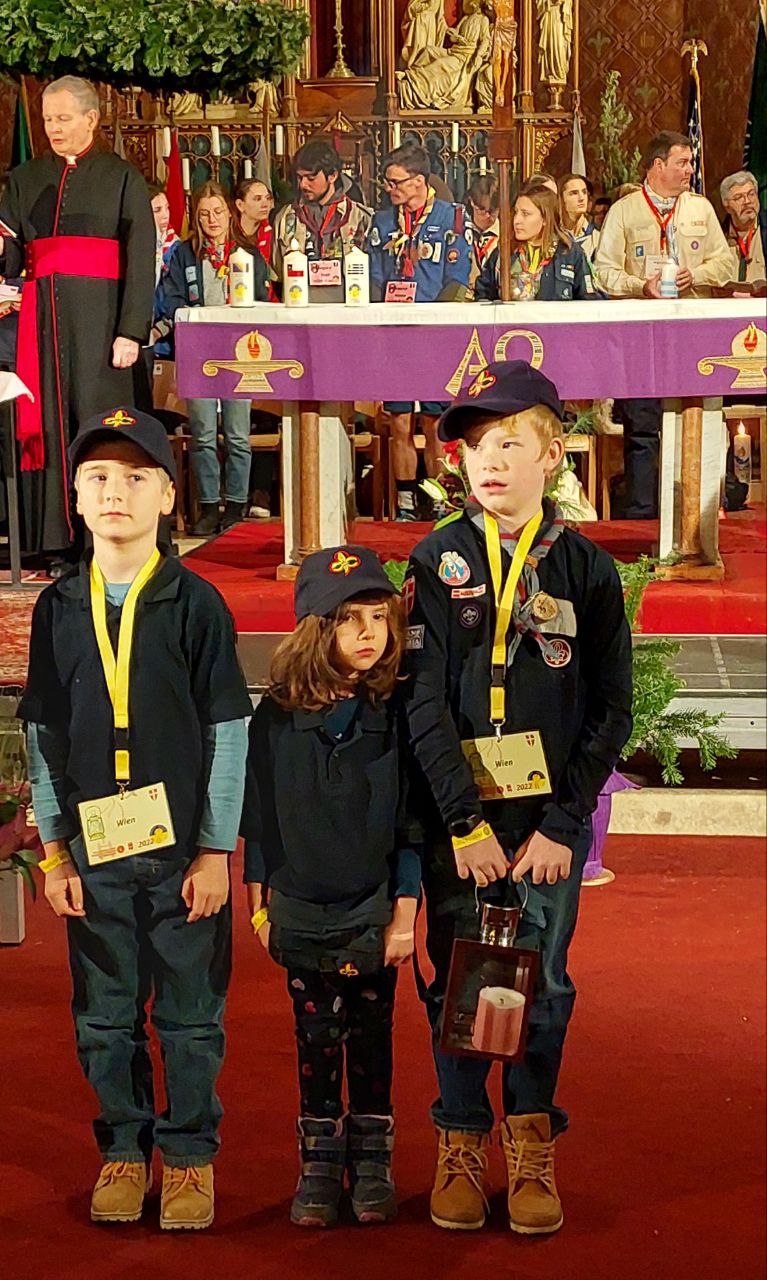 Wir waren heute bei der Friedenslichtfeier 2022 dabei und ein Wichtel und 2 Wölflinge aus unserer Gruppe durften die Laterne für die Wiener Delegation tragen. Mit uns feierten noch Pfadfinder aus mehr als 25 Ländern aus Europa und Amerika, die das Friedenslicht jetzt in ihre Heimat mitnehmen.
